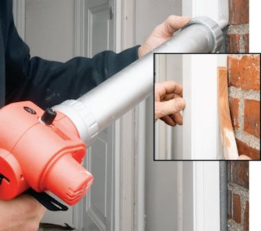 Rengjør falsen grundig før du fortsetter ved å børste vekk alt løst. Det kan være fristende å fortsette uten å gjøre dette, men når du senere skal bruke skum og fuge, er det viktig at festet til underlaget er godt.