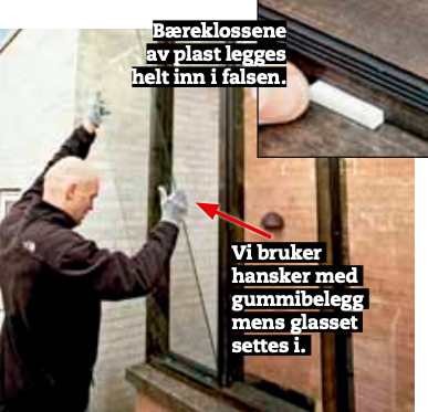 På anleggslistene, som fungerer som “bakstopp” for rutene, setter vi glassbånd av gummi hele veien rundt.