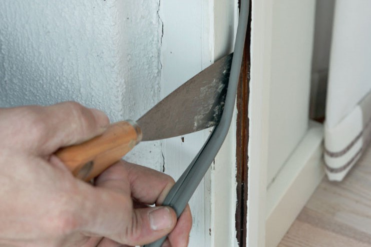 Tetningslisten trykkes inn i noten med en sparkel. Noen ganger skal den masseres litt for å komme inn. Men hvis du har vært nøye med rengjøringen av noten, er dette rimelig enkelt.