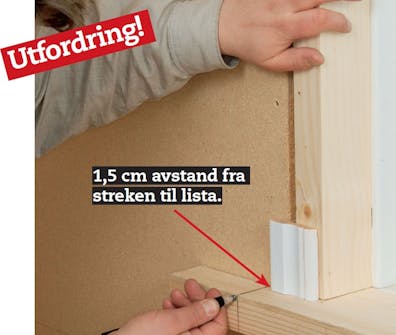 Overfør målene til emnene som er saget til i riktige lengder. Begynn med å måle til den øverste utfôringa og deretter de to sidene - det er også rekkefølgen de monteres i. Sag eventuelt litt utenfor streken, og finjustér deretter med en høvel.