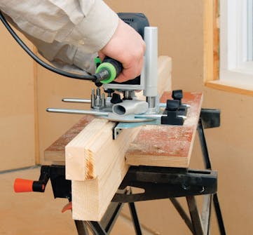 Med en håndoverfres freses en profil på underkanten langs både framkanten og begge endene på vindusbrettet. Det får brettet til å se tynnere og lettere ut og passer fint til den dekorasjons-lista som vi setter på som avslutning.