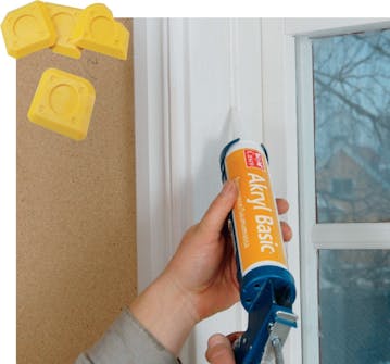 Alle sammenføyninger skal sparkles etter grunnmaling, men før du maler ferdig. Til de aller fleste fugene brukes vanlig akrylfugemasse, men fugen mellom karmen og vindusbrettet stiller ekstra store krav til elastisitet hvis den ikke skal sprekke. Her skal du bruke en fugemasse basert på MS- polymer.