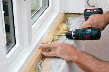 Hvis bunnkarmen på vinduet ikke har et spor som vindusplaten kan sitte i, må du legge til en bærelist.