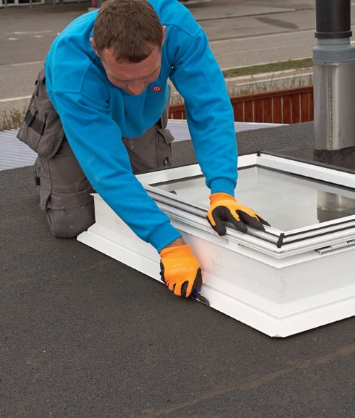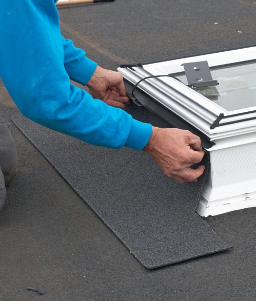 Vinduet er satt fast på taket. Nå skal vi sikre at det ikke kommer inn vann, verken fra regn eller smeltevann.
