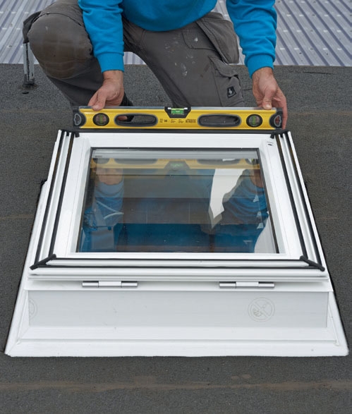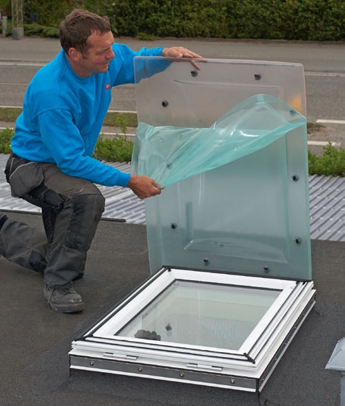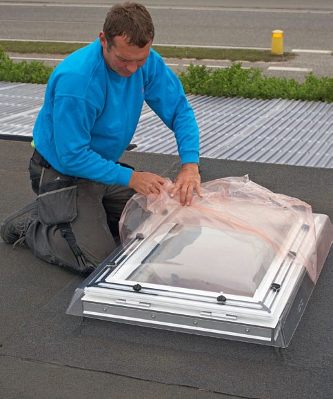 Beskyttelsesplasten trekkes av oversiden - og du har satt opp vinduet. Nå skal lysåpningen lages på innsiden, og vinduets ledninger kobles til strøm, slik at det kan styres nedenfra.