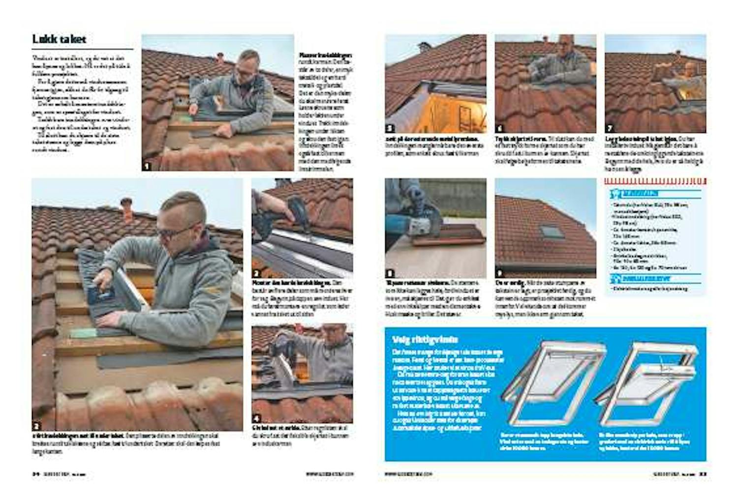 - Takvindu (her Velux GLU, 78 x 98 cm, manuelt betjent)