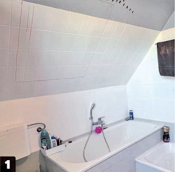 Før du setter i gang, er det lurt å sjekke målene en gang til, slik at du ikke åpner taket mer enn du trenger. Her vil det si at det skal stemme med vindusmålet på 78 x 98 cm.