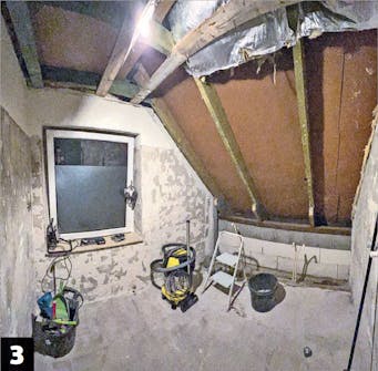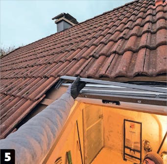 Nå kan du se takkonstruksjonen. Hvis det, som her, er en taksperre i veien, kan du enten flytte vinduet eller sperren. Vi velger det siste, ettersom sperrene ligger så tett at det uansett ikke er plass mellom dem.