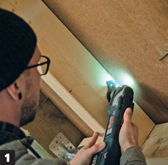Begynn med å skjære opp undertaket. Her er det laget av HDF og kan enkelt kappes opp med en multikutter.