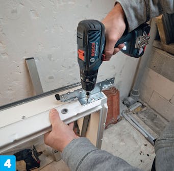 Først skal karmen monteres. Den består av to deler. Den første leveres løs, og hvis du har gjort de foregående oppgavene riktig, er den ytre delen klar til å plasseres i hullet og skrus på plass.