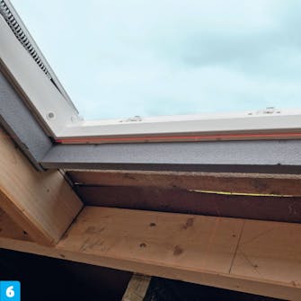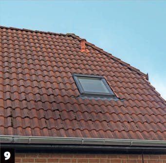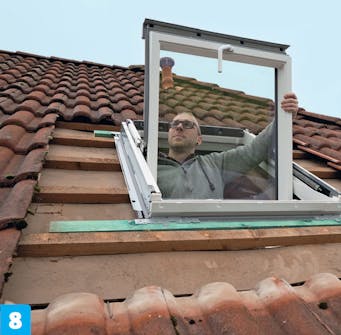 Til slutt kan du skjære til de siste taksteinene og legge dem på plass rundt vinduet.