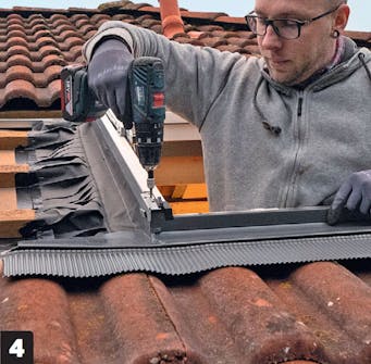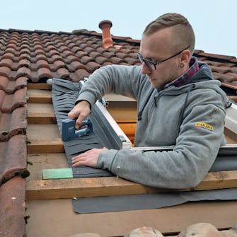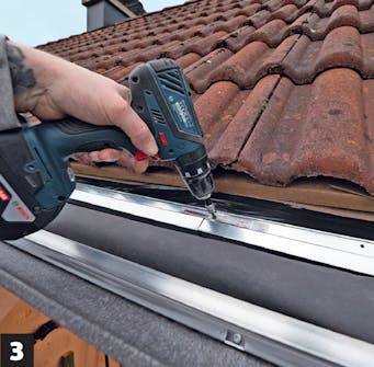 Trykk skjørtet i form. Til slutt kan du med et fast trykk forme skjørtet som du har skrudd fast i bunnen av karmen. Skjørtet skal følge bølgeformen til taksteinene.