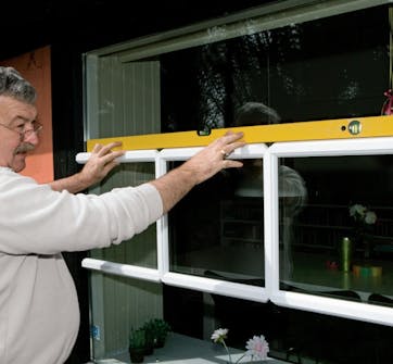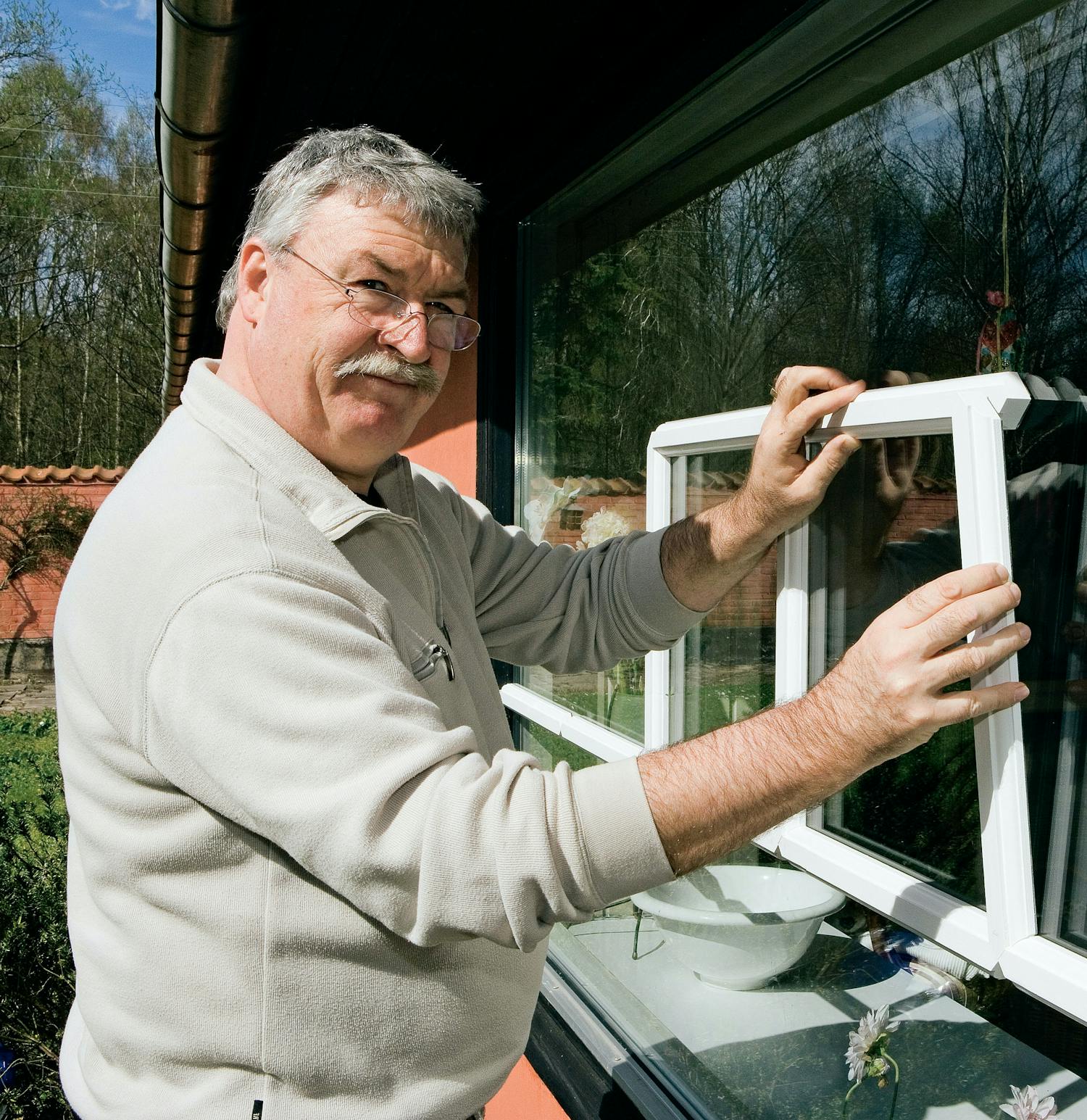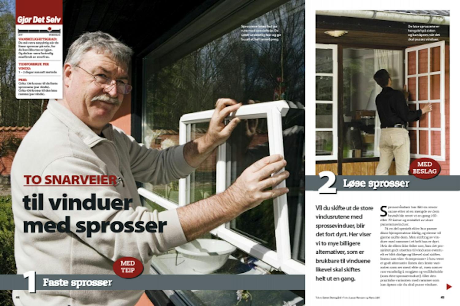 Denne utgaven av et sprossevindu lages med utgangspunkt i ei løs ramme som kan åpnes når vi skal pusse vinduer. Begynn med å måle nøyaktig opp vindus-flata mellom glasslistene. Sjekk høyde og bredde flere steder, og sjekk at hjørnene er vinkelrette. Pass på at du måler alle vin-duene, og tilpass rammene individuelt.