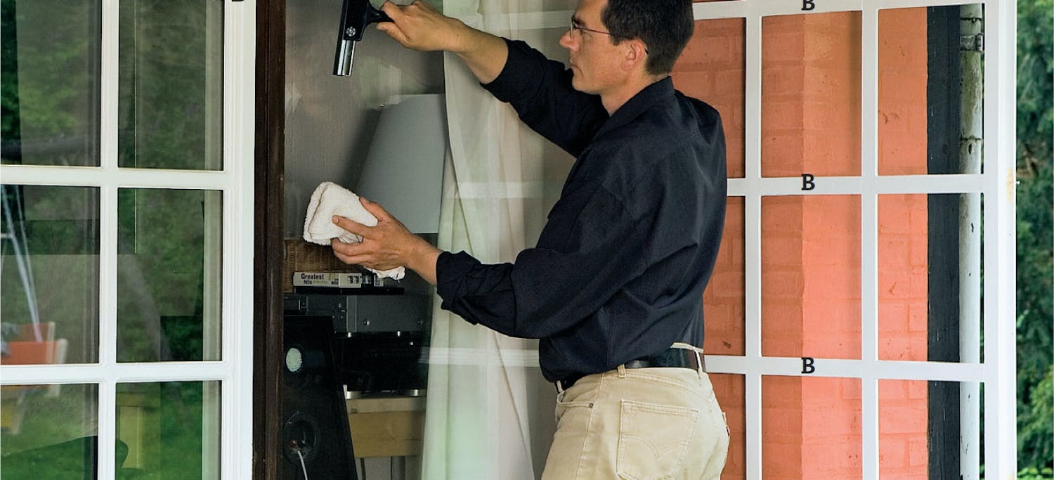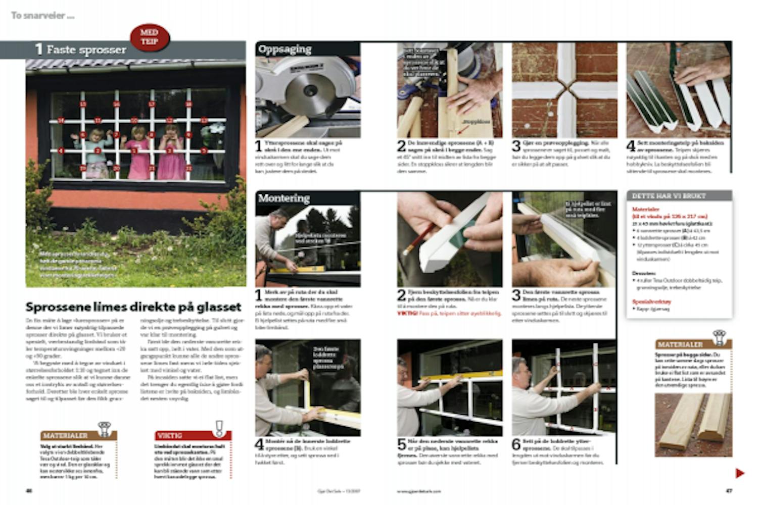 En fin måte å lage «luresprosser» på er denne der vi limer nøyaktig tilpassede sprosser direkte på glasset. Vi bruker et spesielt, værbestandig limbånd som tå-ler temperatursvingninger mellom ÷20 og +90 grader.