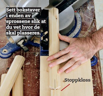 VIKTIG! Sag sprossene på overmål ca. 10 cm slik at du har noe å feste dem i når du freser. Se trinn 2.