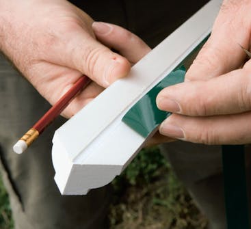 Lag en freseguide av fire lister. Med en freseguide har du god kontroll med overfresen når du skal lage snittene dine. Guiden er laget slik at fresesålen føres langs innsiden av ramma.