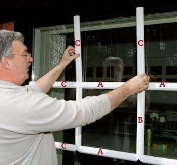 Den første vannrette sprossa limes på ruta. De neste sprossene monteres langs hjelpelista. De ytterste sprossene settes på til slutt og skjæres til etter vinduskarmen.