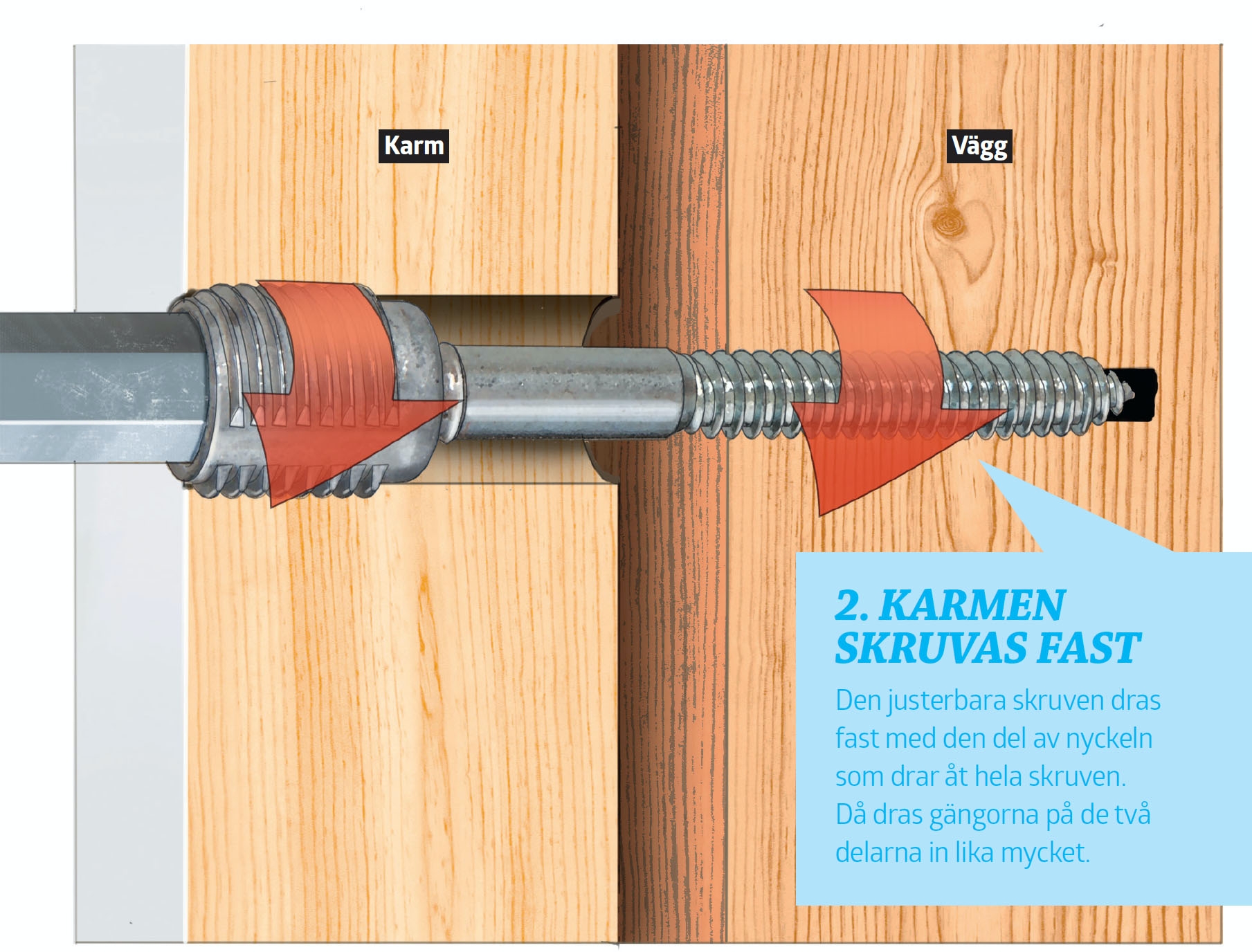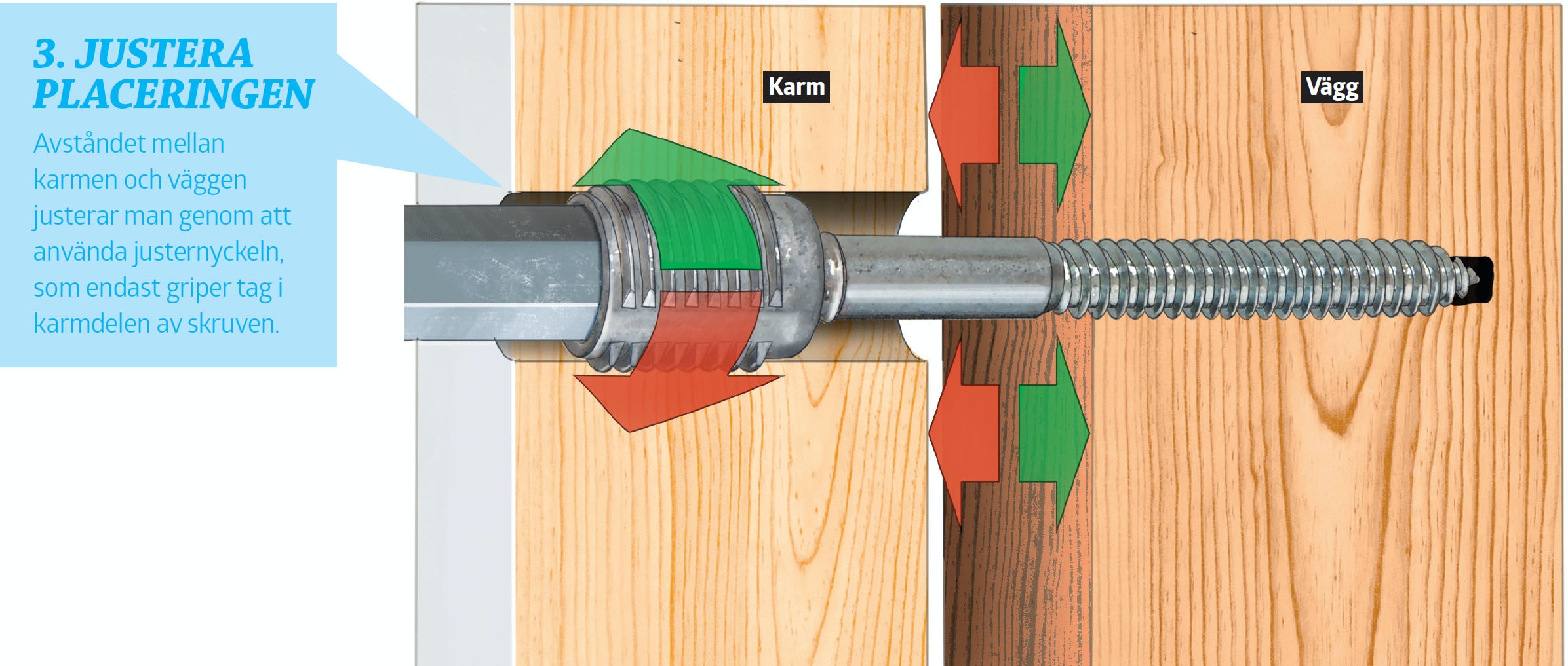 Skruen flytter karmen