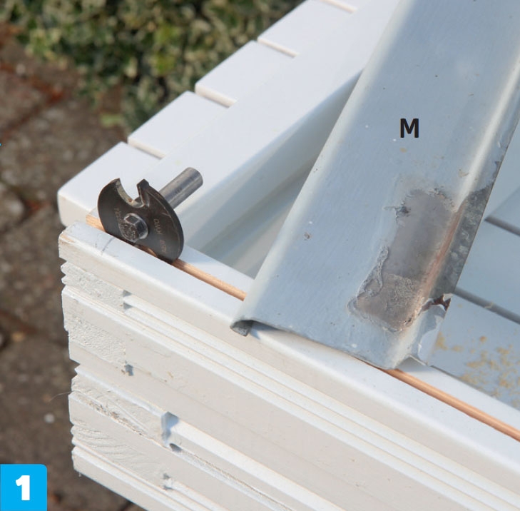 Her lager vi et spor i bunnkarmen til vannbrettet under vinduet (M). Som regel har vinduet en klargjort løsning for dette, der du kan plassere et vannbrett av metall eller tre.