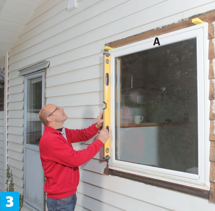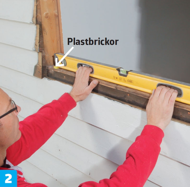 Den effektive arbeidsgangen når du setter et vindu i en trevegg, er slik: Først klosser du opp i bunnen, til vinduet står vannrett med like mye luft oppe og nede. Deretter kiles vinduet fast, så det står loddrett midt i hullet, før det skrus fast.
