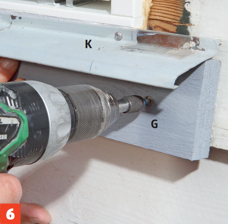 Over vinduet setter vi også et vannbrett (K) og et omrammingsbord (G). Vil du slippe å skjære et spor til vannbrettet, finner du et uten en vannrett bøy, og tetter med fugemasse før det settes fast.