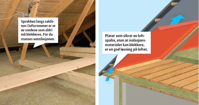 Luften inne i isolasjonen skal stå så stille som mulig. Men rundt isolasjonen skal det være ventilasjon. For mens stillestående luft er god til å isolere, så er det et problem innendørs, fordi fukt ikke transporteres vekk.