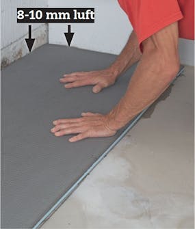 Det er ingen store utfordringer her, men du skal være nøye med å trykke alle våtromsplatene like langt ned i limet, slik at de havner i akkurat samme høyde.