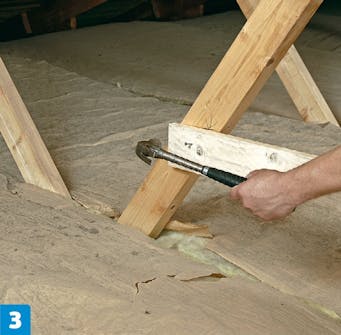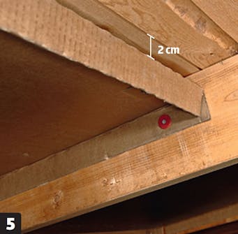 Sett et tilsvarende bord (21 x 98 mm) på den andre siden av sperren. Fortsett på samme måte på alle sperrene.