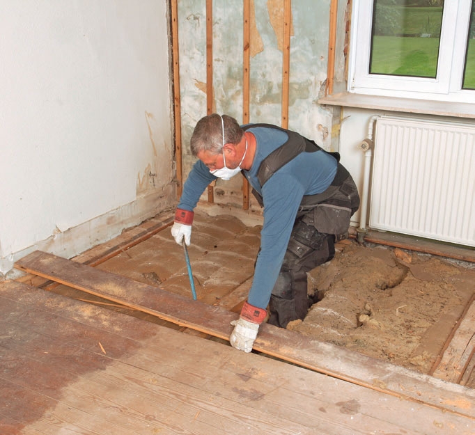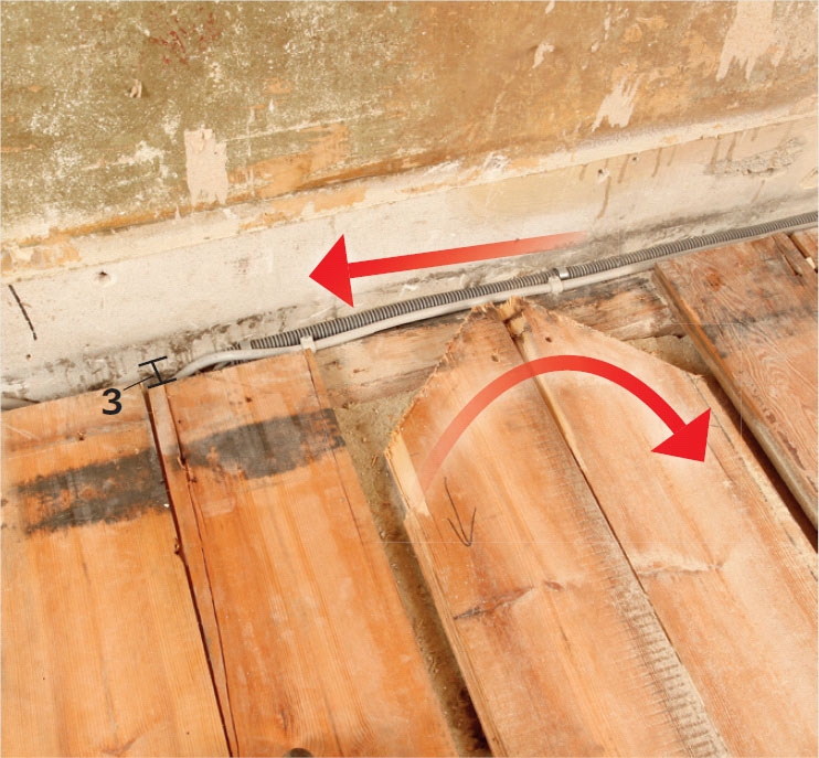 I gamle murhus ble gulvet ofte lagt før veggene ble pusset. Derfor kan du bli nødt til å lage et snitt langs veggen, slik at du kan vri løs bordene.