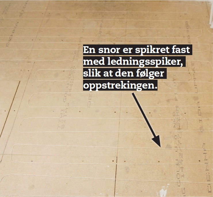 Ta en kontrollmåling hvis du vil være helt sikker på at du har beregnet riktig lengde på varmerørene. Tegn opp rørenes plassering på gulvet, og bruk en snor i samme lengde som varmerørene til å måle etter med.