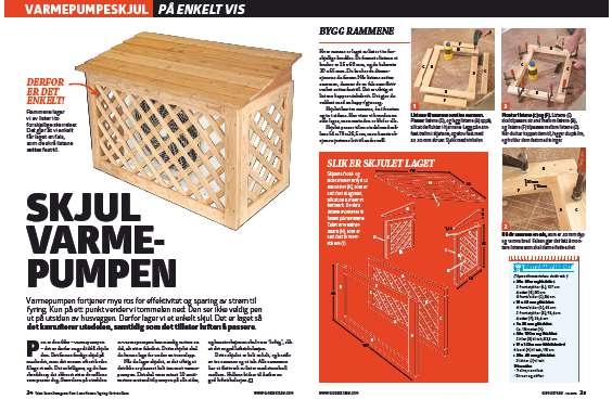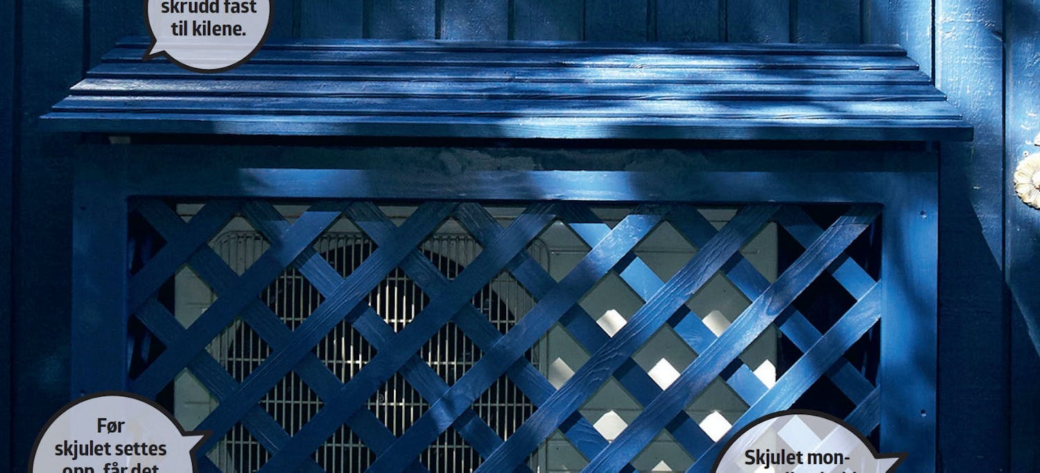Flettverket til rammene lages av 9 x 33 mm glattkantlister. De monteres på skrå i falsen til rammene, slik at det dannes en avskjerming som gir ventilasjon til pumpen.