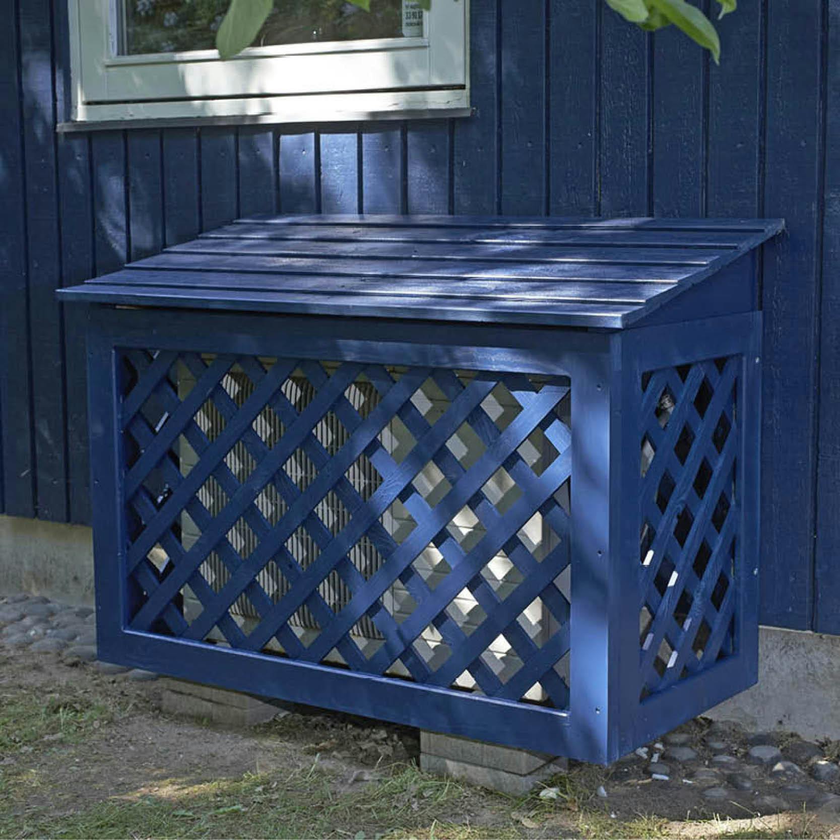Det skal være minst 10 cm avstand til pumpen på alle sider, og konstruksjonen må være ”luftig” for å sikre god sirkulasjon. Hvis skjulet er for tett, vil ikke varmepumpen fungere optimalt.