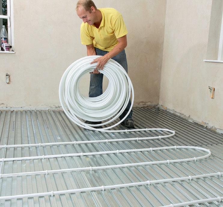 Det varme vannet i gulvet renner ikke som i gamle dager i faste rør, men i bøyelige slanger, såkalte PEX-rør.
