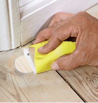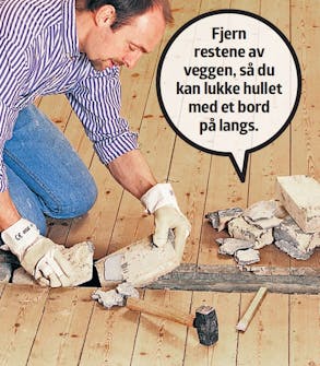 Har du fjernet en radiator i et rom med tregulv, etterlater det et hull der røret har sittet. Øynene trekkes mot det, som en daglig irritasjon, hvis du ikke gjør noe med det. Den peneste løsningen får du ved å lukke hullet med en propp. Den bores ut av en trekloss og limes fast i hullet. Når du sliper over den, og kanskje også gjør den litt “skitten”, vil du ikke legge merke til reparasjonen.