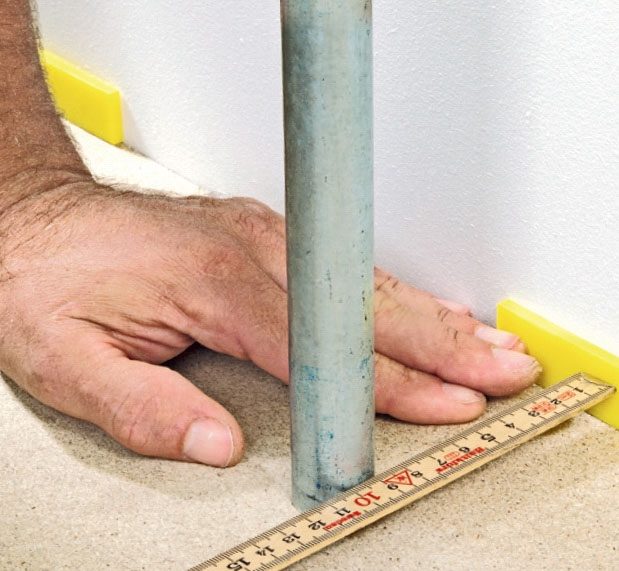 Har du et gulvbord som skal skjæres til, slik at det kan gå rundt et rør som stikker opp til for eksempel en radiator, skal du være nøye når du måler opp.
