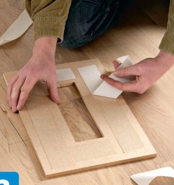 Lag en mal i et platestykke, der du har laget et hull som tilsvarer lusen. Malen settes fast med dobbeltsidig teip rundt ødelagte stykket i gulvet. Sørg for at den sitter nøyaktig langs stavene.