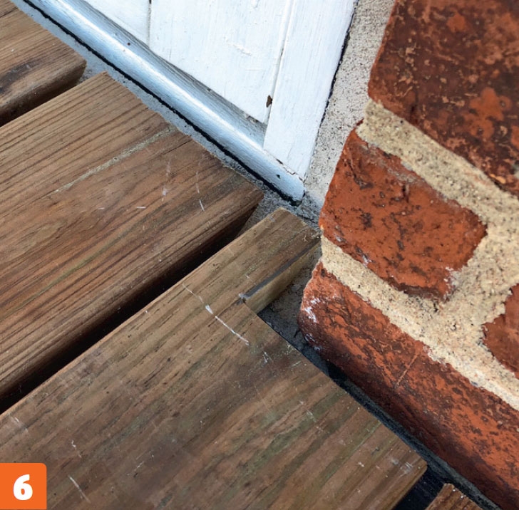 Ved døråpningen er du nødt til å tilpasse terrassebordene, slik at avstanden til veggen blir den samme på begge sider av døren.
