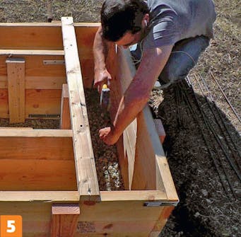 Støpeformene her er kvadratiske, men du kan også lage dem med andre former. Sidene settes sammen med vinkelbeslag i hjørnene. De er lette å skru av, når formen skal fjernes igjen.