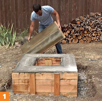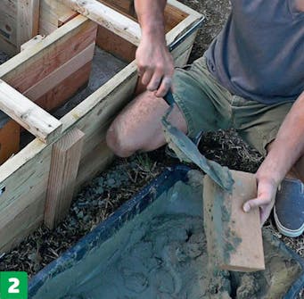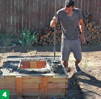 Det er ikke vanskelig å støpe et bålsted i betong, men vær nøye med å fordele og vibrere betongen, slik at du unngår luftlommer.
