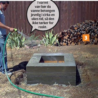 Hvis du støper det i betong, får du et bålsted som er solid og holder i mange år. I denne videoen kan du se hvordan det gjøres.