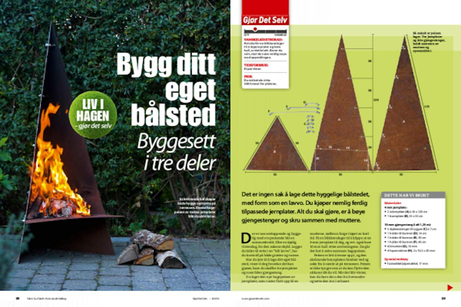 Først skrus de fem stengene i ryggen, uten at de spennes helt. Deretter legges stengene som skal holde bunnplaten på plass, og mutterne til dem spennes løst fast. Bunnplaten legges inn slik at vinkelen mellom de to ryggstykkene passer til bunnplaten. Alt spennes skikkelig sammen, og bålstedet er klart til bruk.