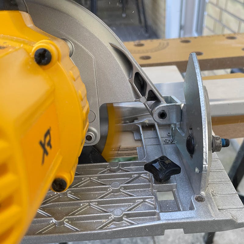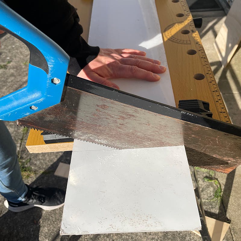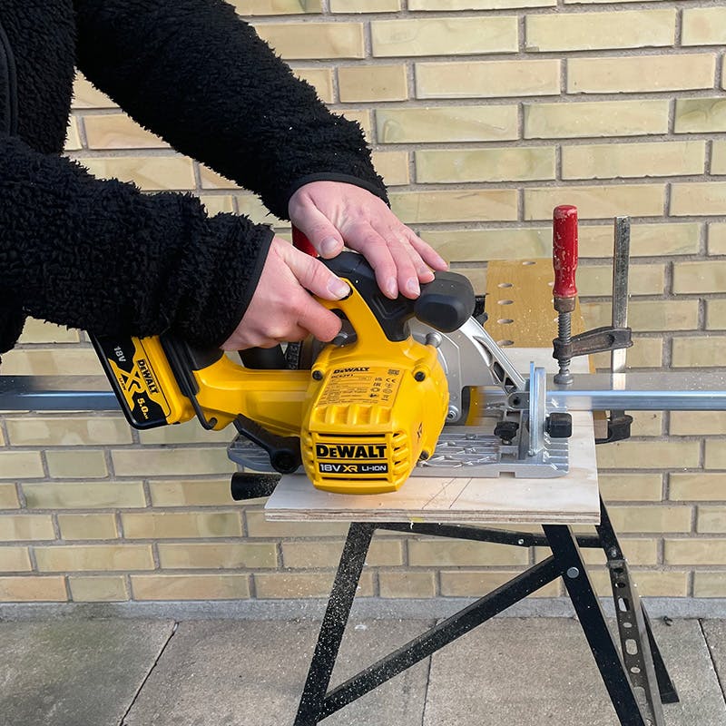 Skjær ut platebitene med en sirkelsag, alternativt kan du selvsagt også sage ut delene med en håndsag.