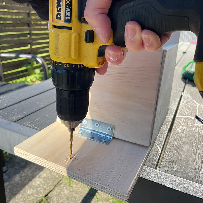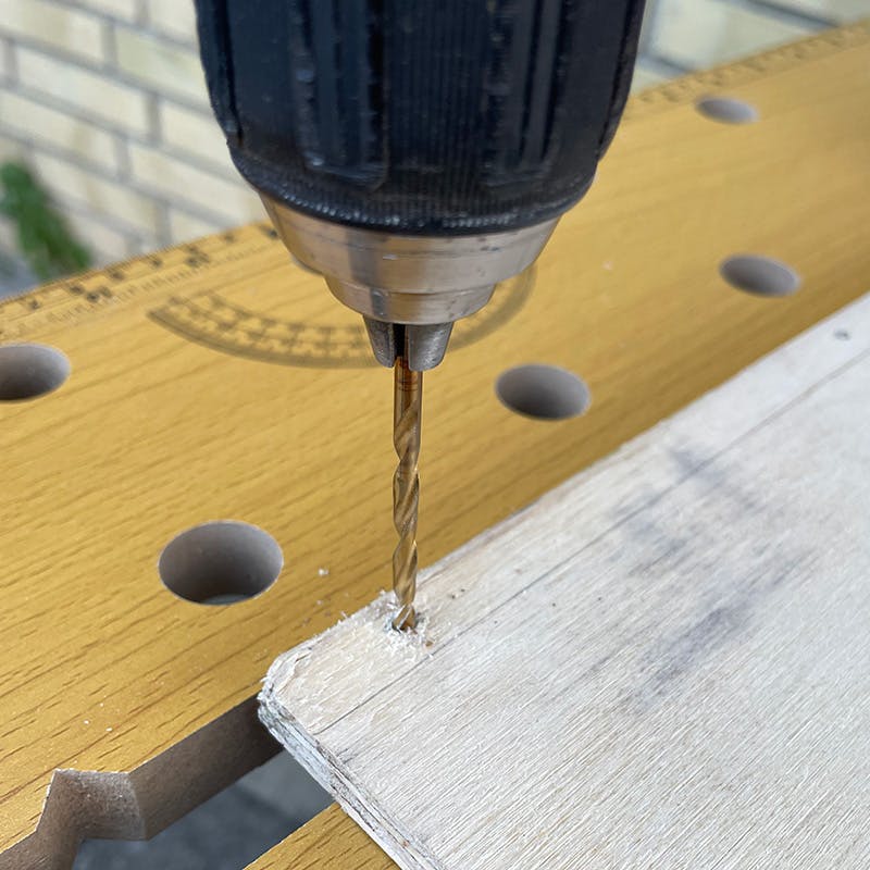 Lag noen markeringer på bunnplaten og bakstykket, slik at du vet hvor du skal bore. Du kan bruke sidestykkene som mal.