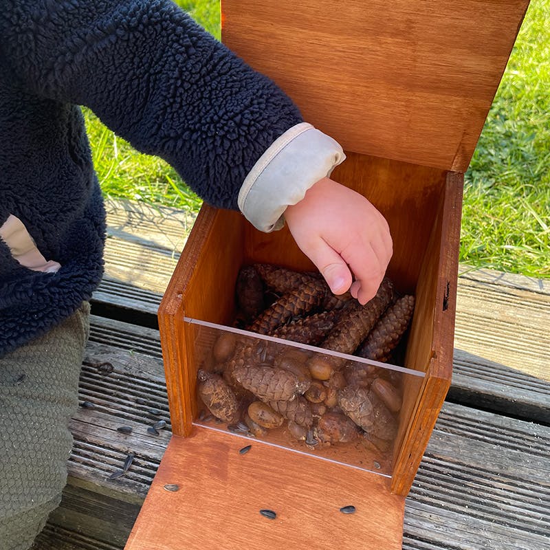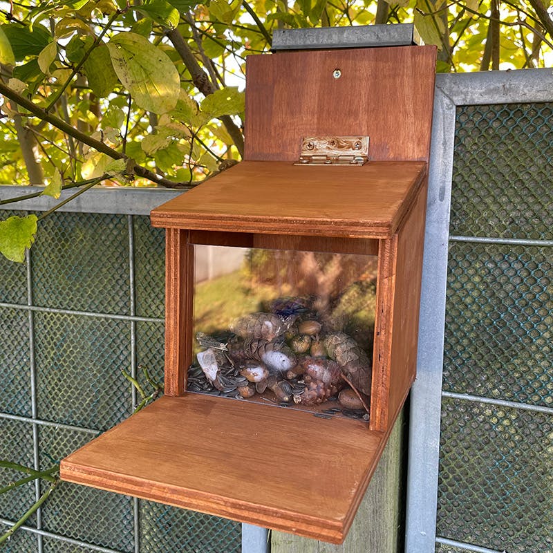 Du kan derfor bygge en ekornmater der maten er lett tilgjengelig for ekornene.