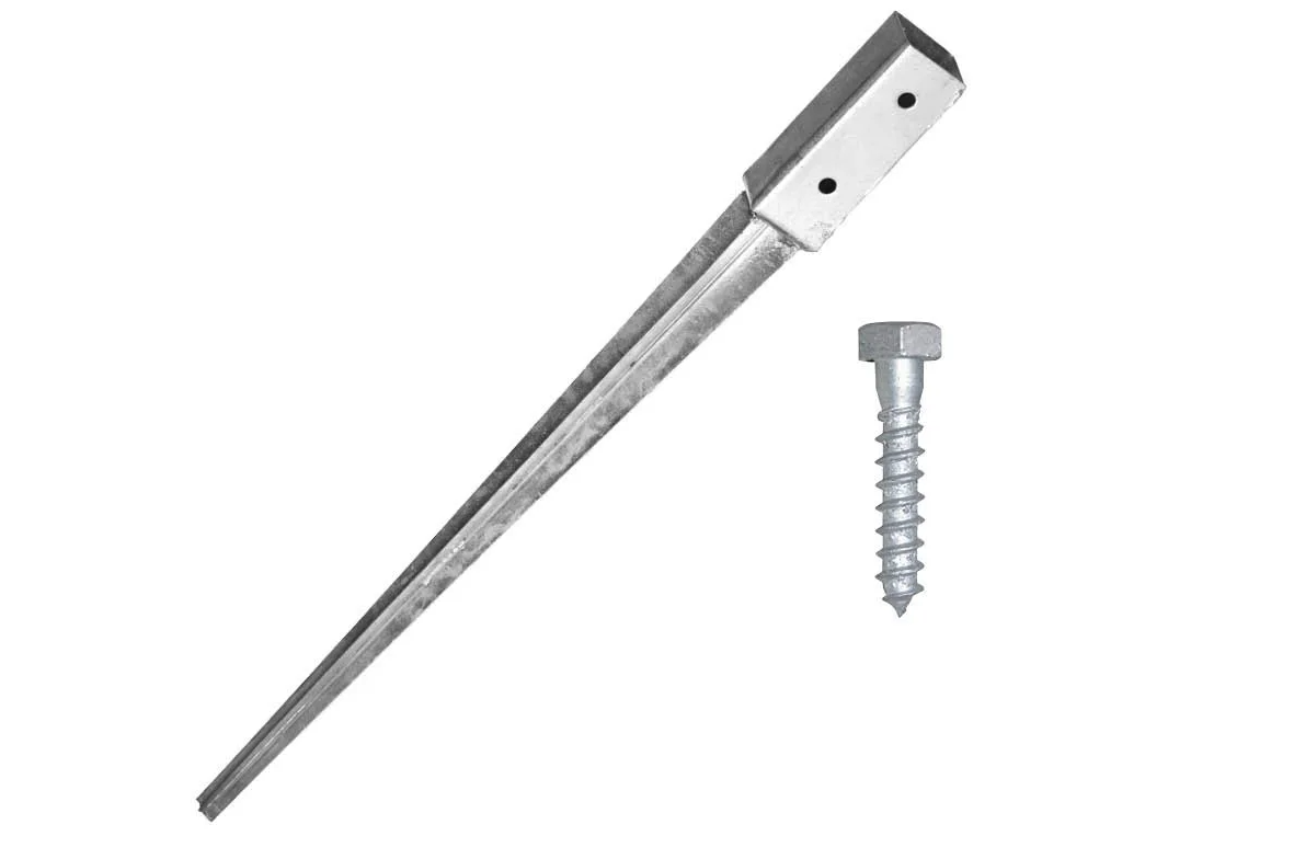 Spydet er laget i galvanisert stål, som ikke ruster. Det holder stolpene oppe fra bakken, slik at de unngår fukt og råte.