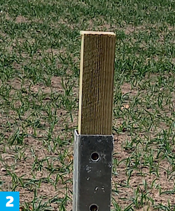 Lag en avstandslist, som har samme lengde som gjerdemodulen. Her brukes en av gjerdestolpene som avstandslist.