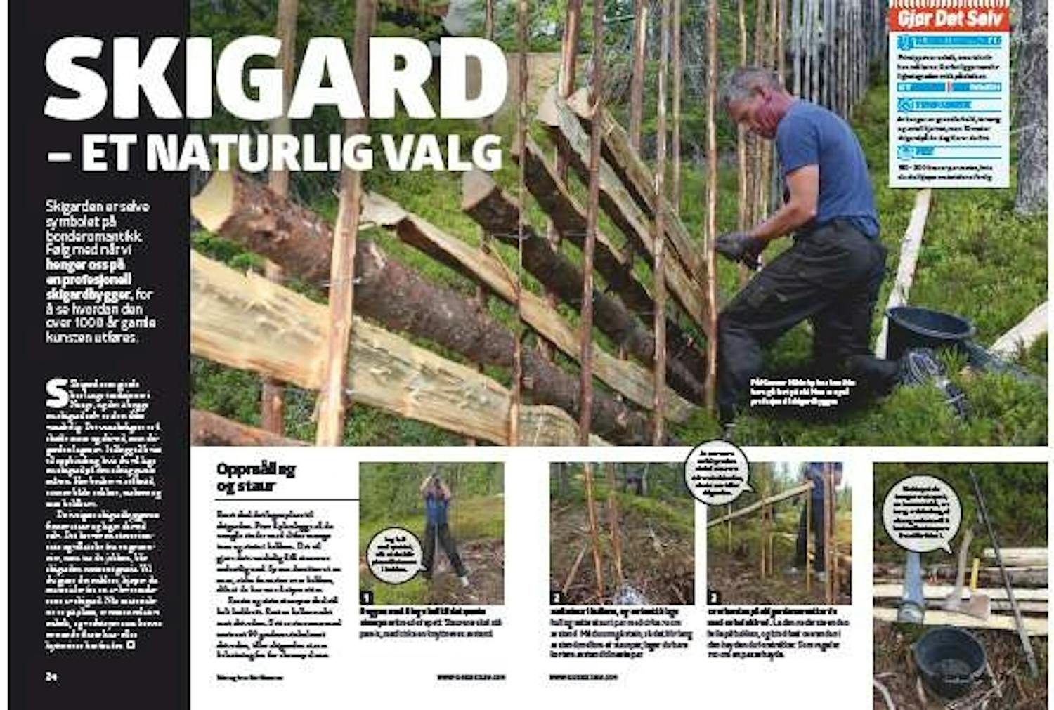 Staur og skived selges av flere skigardbyggere. Regn med at du bruker tre staur og tre skived per løpemeter skigard.