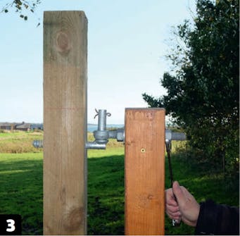 Du skal forsikre deg om at lukkebeslaget kan rekke over de to loddrette stolpene som møtes på midten.