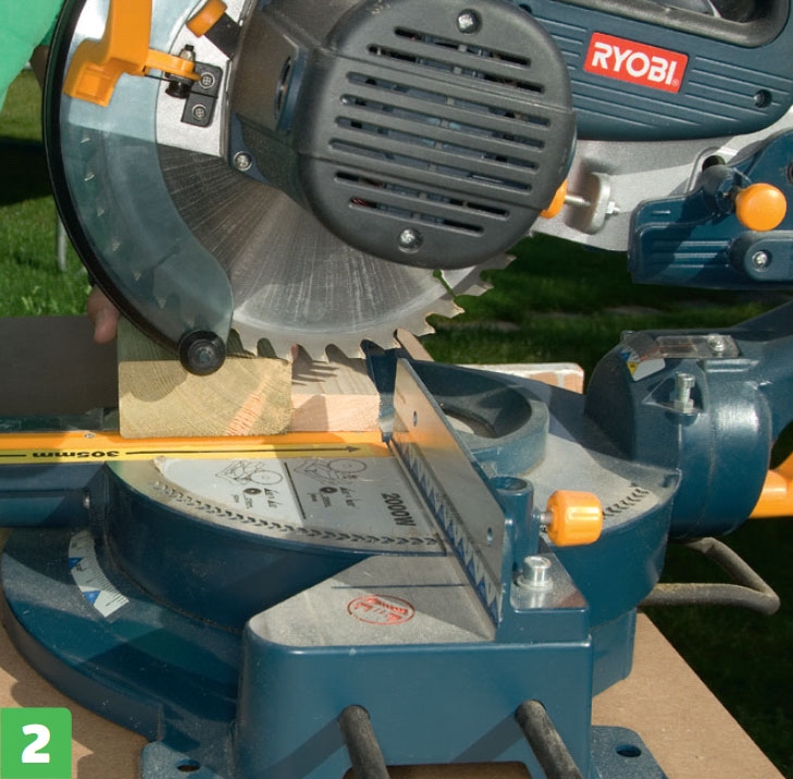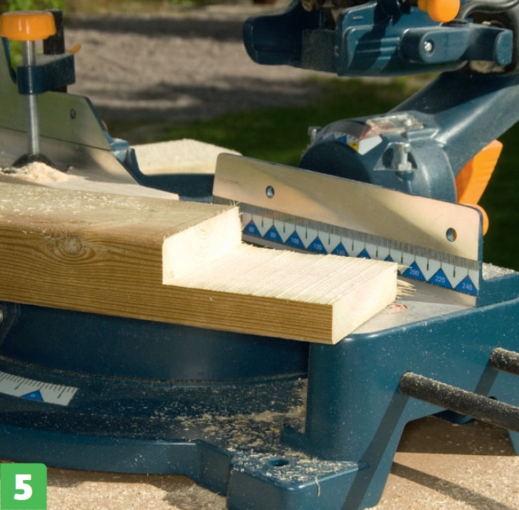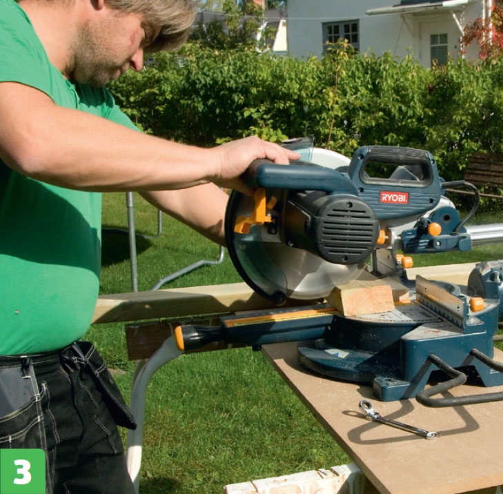 Lag et lengdestopp med en lektestump. Vi setter fast en lektestump på sagens bakkant, og lager på den måten et lengdestopp. Da slipper vi å ta et nytt mål for hver gang vi skal sage et nytt emne.