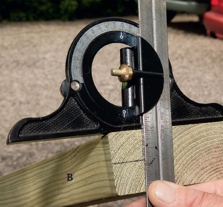 Avmerk bredden av én bjelke (A) på den andre (B), og strek opp. Juster sagdybden til 22 mm hvis du skal arbeide med kapp-/gjærsag, som vi gjør her.
